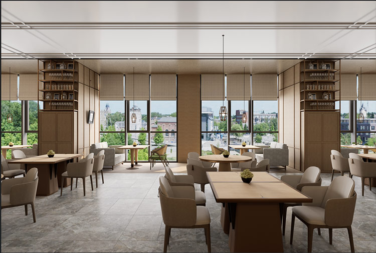* Waarm neutral Faarwen: Karamelliséierter Téin déi routbrong mat Modernitéit vermëschen, gëeegent fir en nostalgescht kommerziell Ëmfeld ze kreéieren.